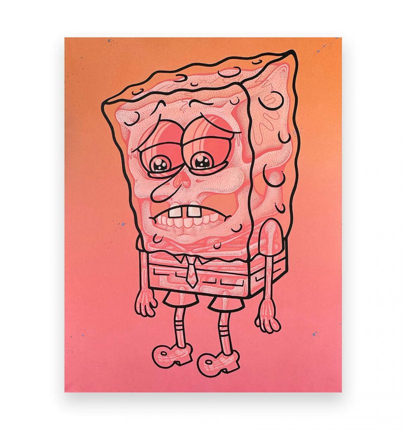 Blood no pinta, desviste. Te entrega a Bob Esponja no con sonrisa babosa, sino con costillas fluorescentes en tonos neón. Charlie Brown ya no es el niño deprimido de toda la vida, ahora es un cadáver colorido que parece portada de disco de punk californiano. La ironía: cuanto más mórbido se pone, más nostálgico resulta. ¿Moraleja? Nuestra infancia estaba condenada desde el principio, solo que Will la volvió galería.