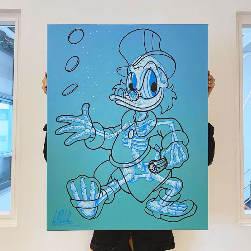 Hay artistas que pintan paisajes, hay otros que retratan frutas como si fueran la última Coca del desierto, y luego está Will Blood, un británico que dijo: “¿Y si le saco las tripas a Bart Simpson, pero bonito?”. Así nació su arte: caricaturas clásicas reimaginadas como si hubieran pasado por un scanner de aeropuerto poseído por H.R. Giger.