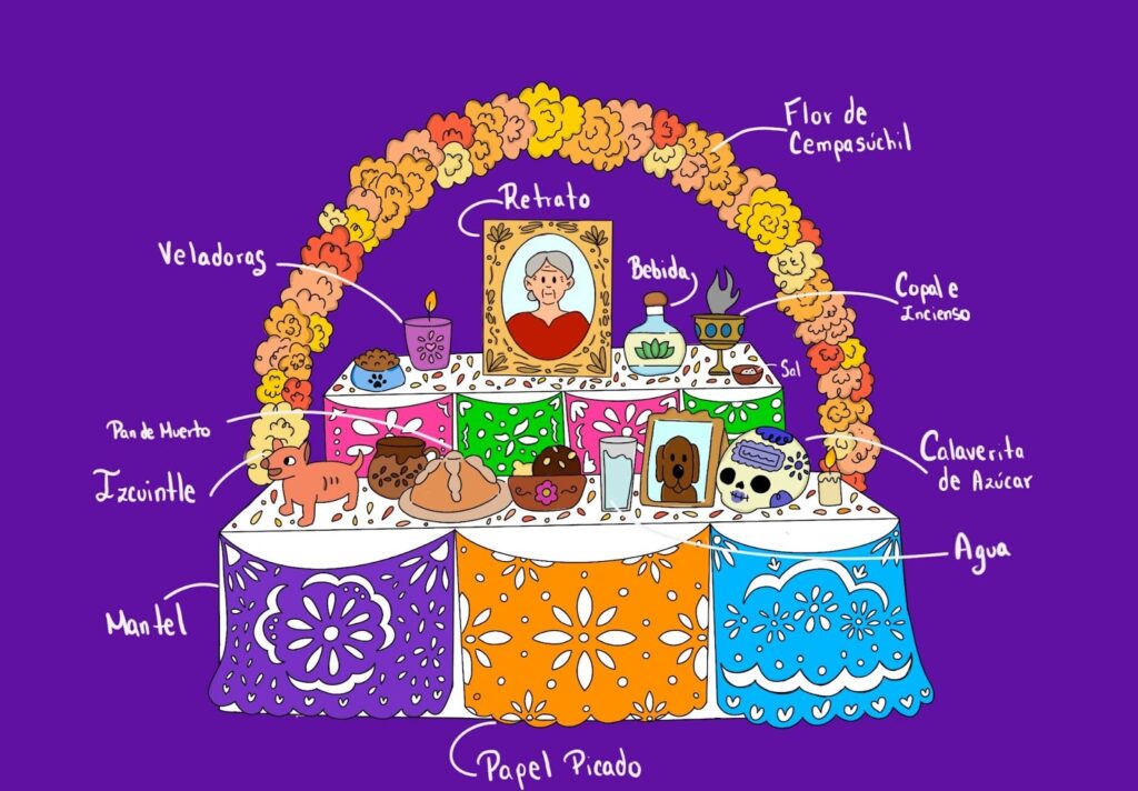 El altar de muertos es un símbolo de amor, memoria y reencuentro. Cada elemento tiene un significado profundo y espiritual: