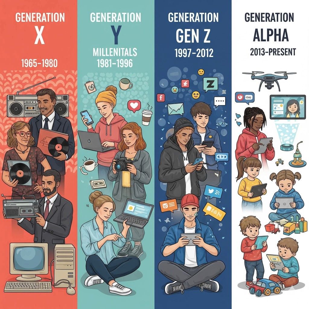 Aquí te dejo un video que describe cada generación, para que sepas a cuál perteneces.