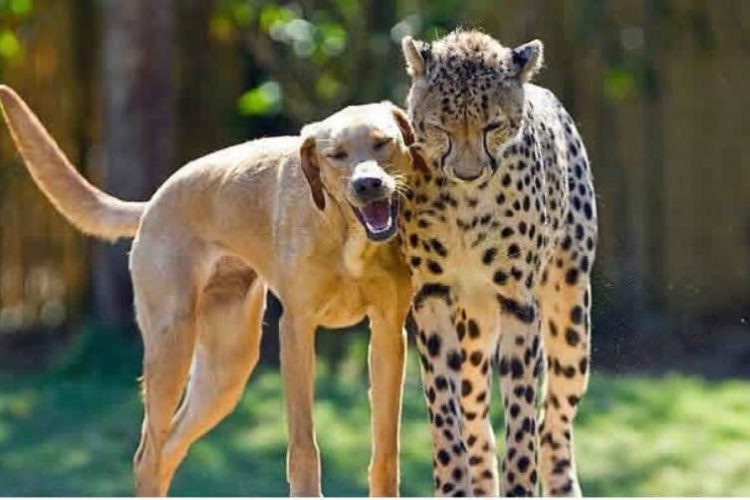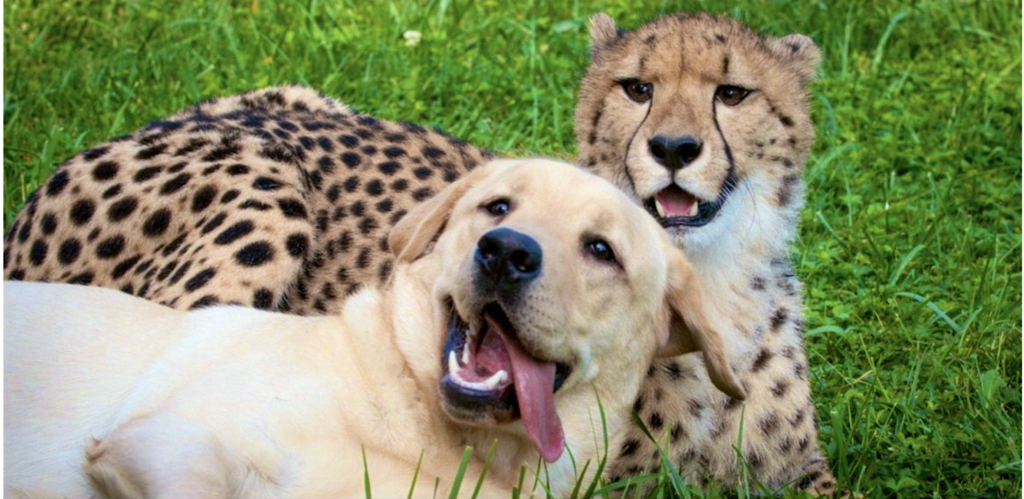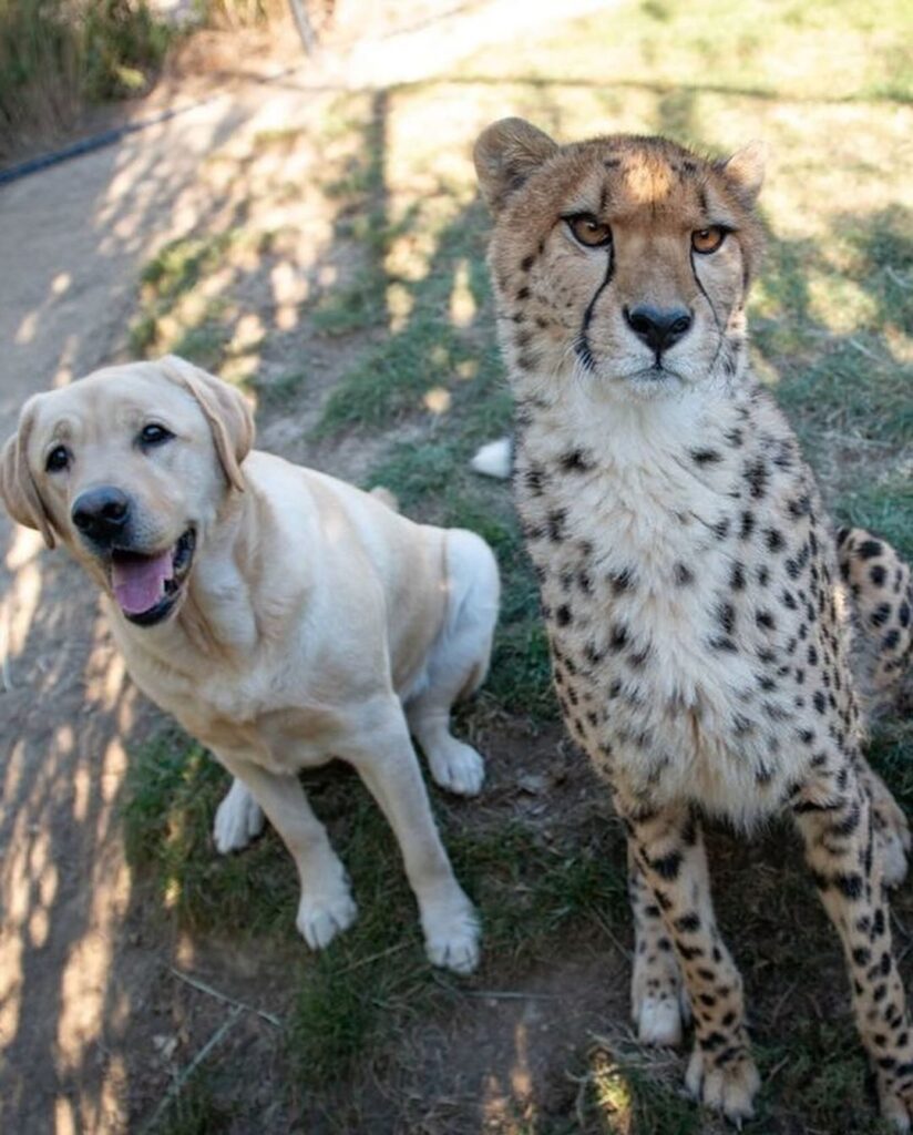 Desde que los guepardos son bebés, en varios centros de conservación y zoológicos se les asigna un perro de apoyo emocional. Estos perros, generalmente de razas tranquilas como labradores, pastores o mezclas con temperamento estable, crecen junto a los guepardos y se convierten en sus compañeros. No están ahí para jugar únicamente, sino para cumplir una función clave: reducir los niveles de ansiedad y timidez del felino.