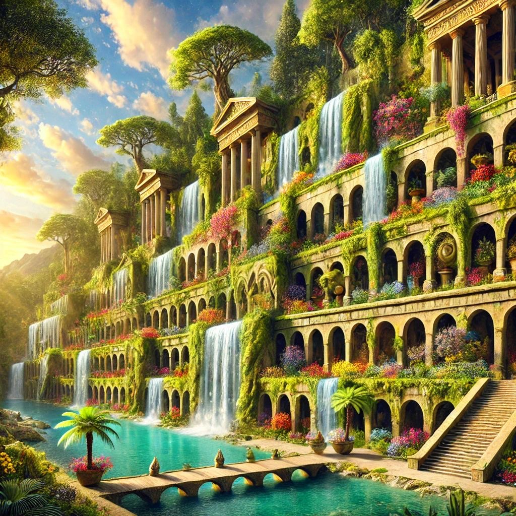 La leyenda cuenta que el rey los mandó construir para su esposa Amytis, quien extrañaba las montañas verdes de su tierra natal. Para consolarla, ordenó crear terrazas llenas de árboles, flores y cascadas en medio del desierto.