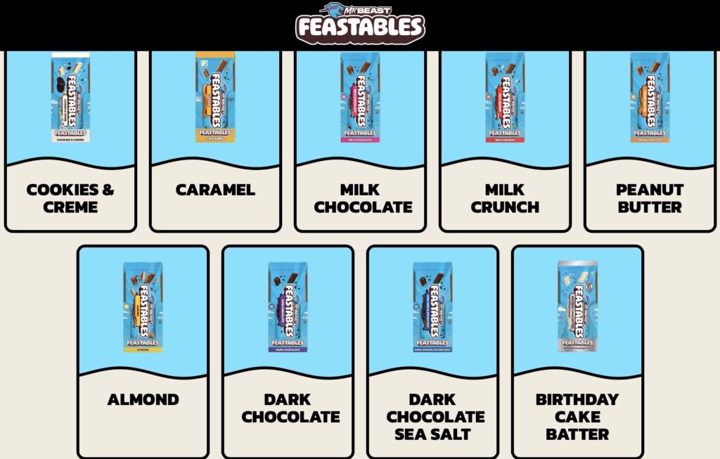 Hoy, el catálogo de Feastables abarca desde opciones veganas hasta versiones indulgentes, ofreciendo un equilibrio entre nutrición, sabor y diversión. La marca ha logrado crear una experiencia que va más allá de comer chocolate: es disfrutar algo hecho con propósito.