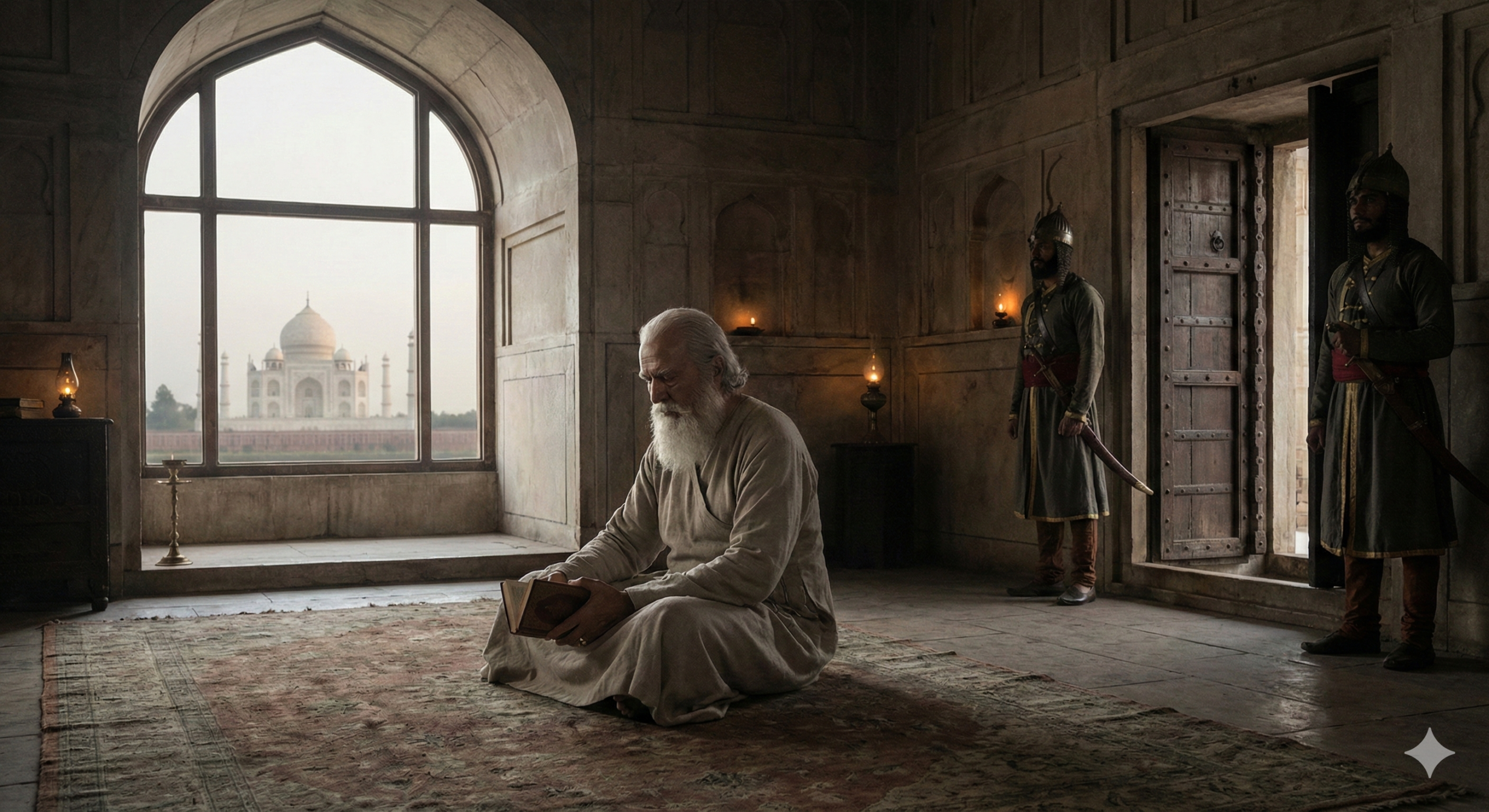 En 1658, apenas cinco años después de terminar el Taj Mahal, su propio hijo, Aurangzeb, dio un golpe de estado. Aurangzeb era un hombre austero, religioso y despiadado que veía el despilfarro de su padre como un pecado y una debilidad política. Aurangzeb asesinó a sus hermanos (los herederos favoritos) y fue a por su padre. Pero no lo mató. Le reservó un destino más cruel e irónico.